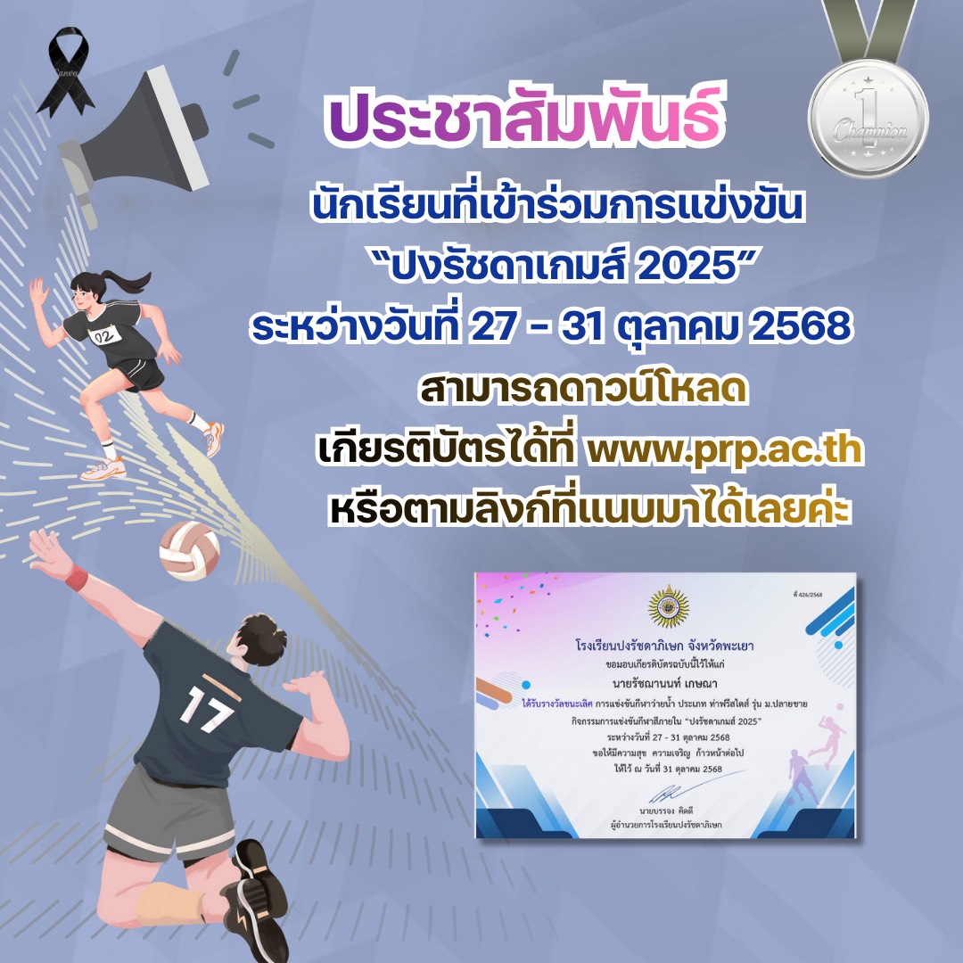 - ดาวน์โหลดเกียรติบัตรกีฬาสี