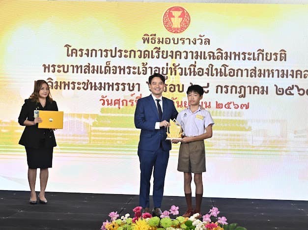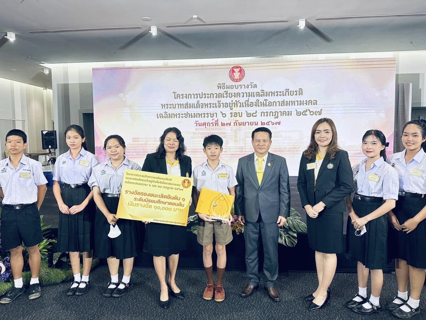 วันศุกร์ ที่ 27 กันยายน พ.ศ.2567 ผู้อำนวยการสิทธิชัย สิทธิวงศ์ ผู้อำนวยการโรงเรียนปงรัชดาภิเษก มอบหมายให้นางพัชรินทร์ สุขประสาร รองหัวหน้ากลุ่มบริหารงานวิชาการ นำคุณครูผู้ฝึกสอนและนักเรียนร่วมพิธีมอบรางวัล โครงการประกวดเรียงความเฉลิมพระเกียรติ พระบาทสมเด็จพระเจ้าอยู่หัว เนื่องในโอกาสมหามงคลเฉลิมพระชนพรรษา 6 รอบ ณ อาคารรัฐสภา โดยมีนายภราดร ปริศนานันทกุล รองประธานสภาผู้แทนราษฎร เป็นผู้มอบรางวัล