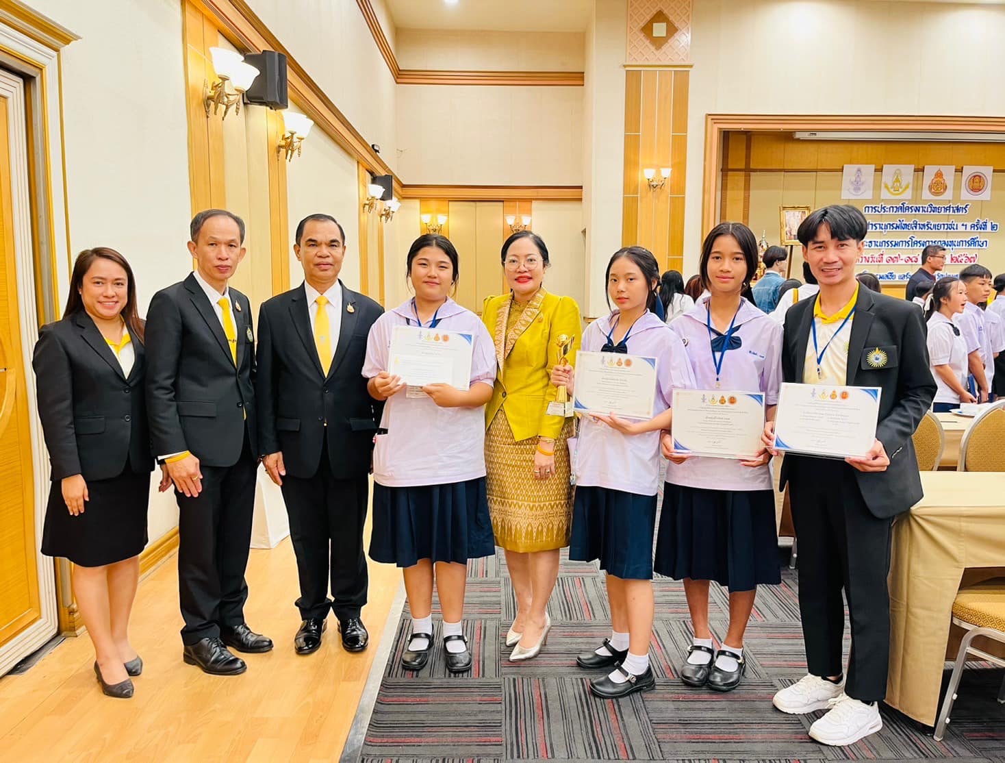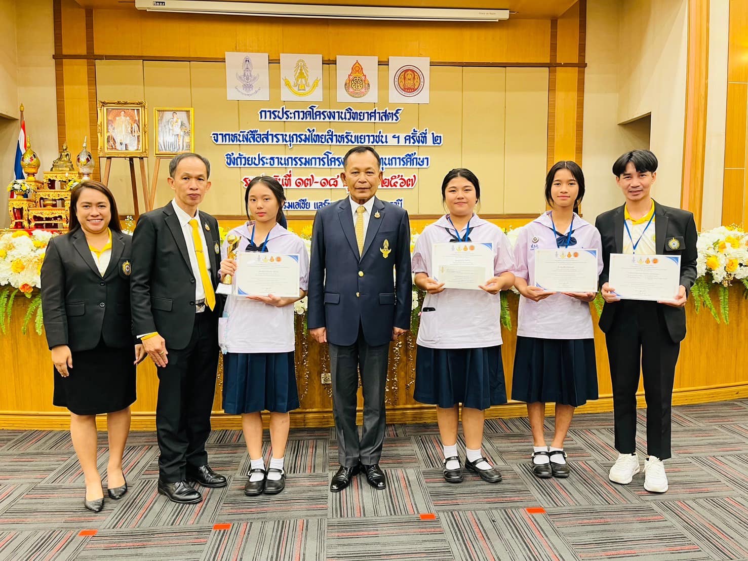 วันที่ 17-18 ตุลาคม 2567 นายสิทธิชัย สิทธิวงศ์ ผู้อำนวยการโรงเรียนปงรัชดาภิเษก พร้อมด้วยนางสาวมะลิวัลย์ เขื่อนปัญญา นายธีรยุทธ ปันอินต๊ะ ครูที่ปรึกษาโครงงาน ได้นำนักเรียนเข้าประกวดโครงงานวิทยาศาสตร์จากหนังสือสารานุกรมไทยสำหรับเยาวชนฯ ครั้งที่ 2 (รอบชิงชนะเลิศ) ชิงถ้วยประธานกรรมการโครงการกองทุนการศึกษา ในการนี้ นักเรียนโรงเรียนปงรัชดาภิเษก จำนวน 3 คน คือ เด็กหญิงนันท์ธนภัส วังปิงชัย เด็กหญิงไอริน ใจกว้าง และเด็กหญิงสิรินทิพย์ ยงยศ ได้รับรางวัลรองชนะเลิศอันดับ 1 ระดับชั้นมัธยมศึกษาตอนต้น ม.1-3 ในชื่อโครงงานการศึกษาพลาสติกชีวภาพจากเปลือกผลไม้สู่การพัฒนาผลิตภัณฑ์วิสาหกิจชุมชนให้ยั่งยืน ณ โรงแรมเอเชีย แอร์พอร์ท จังหวัดปทุมธานี