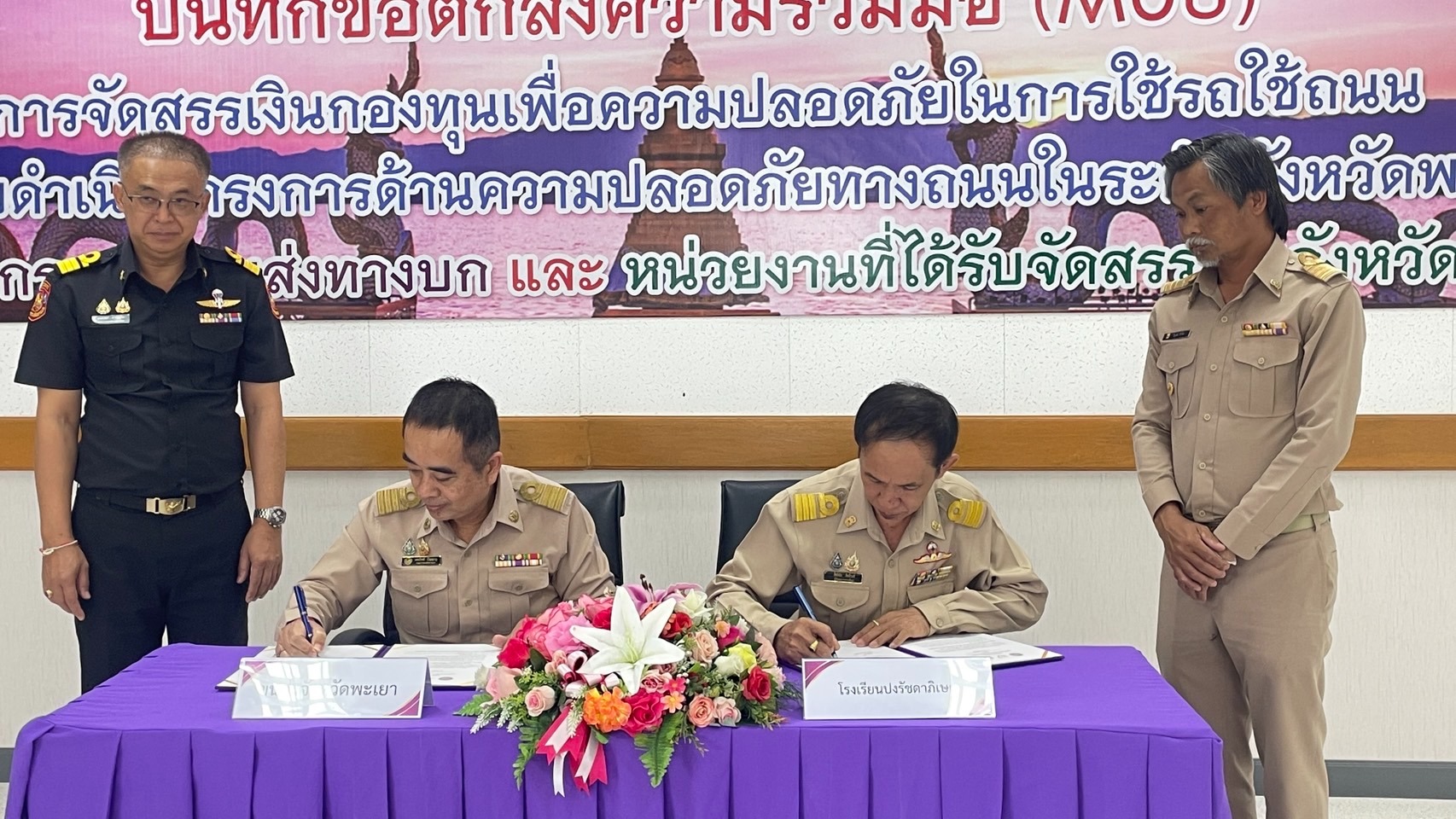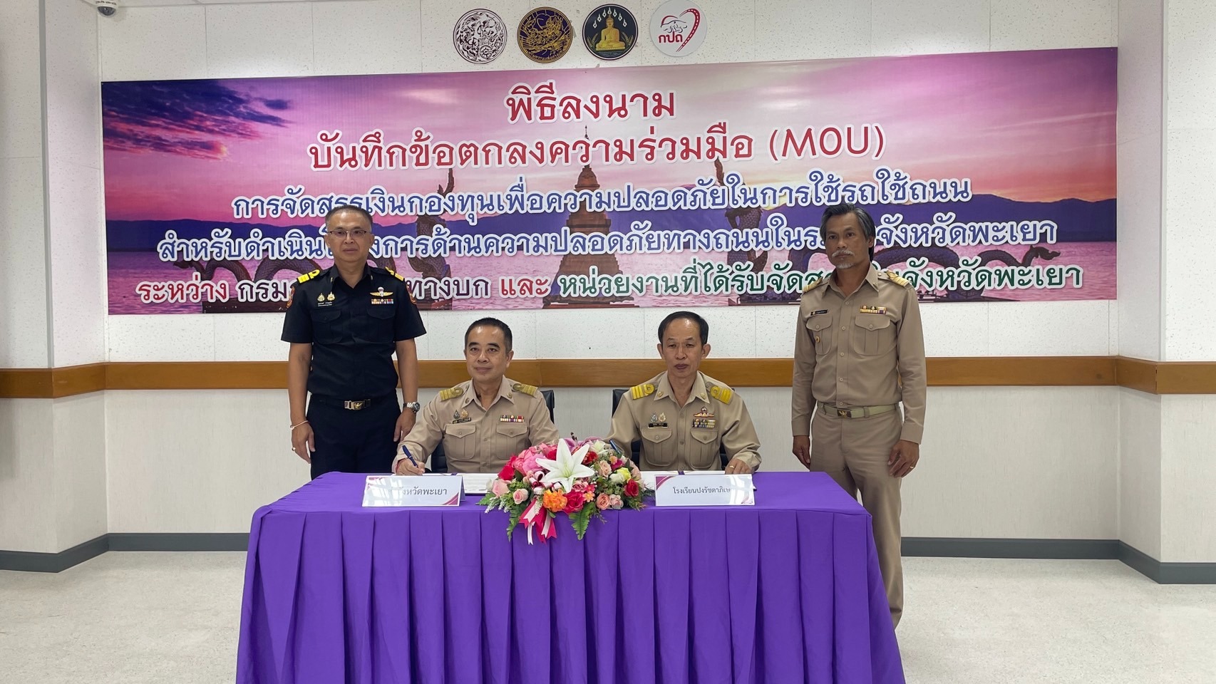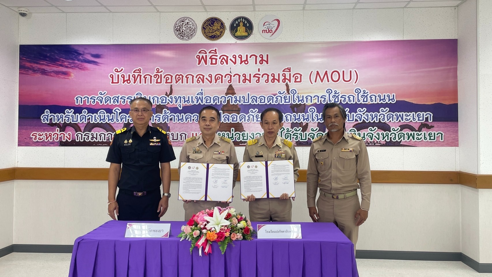 วันที่ 16 มิถุนายน 2568 นายสิทธิชัย สิทธิวงศ์ ผู้อำนวยการโรงเรียนปงรัชดาภิเษก พร้อมด้วยนายวิบูลย์ ผิวนิล หัวหน้ากลุ่มงานบริหารงานทั่วไปและคณะ ได้เข้าร่วมพิธีลงนามบันข้อตกลงความร่วมมือ(MOU) การจัดสรรเงินกองทุนเพื่อความปลอดภัยในการใช้รถใช้ถนน สำหรับดำเนินโครงการด้านความปลอดภัยทางถนนในระดับจังหวัดพะเยา ณสำนักงานขนส่งจังหวัดพะเยา ซึ่งโครงการดังกล่าวได้รับการสนับสนุนงบประมาณจากกองทุนเพื่อความปลอดภัยในการใช้รถใช้ถนน (กปถ.)