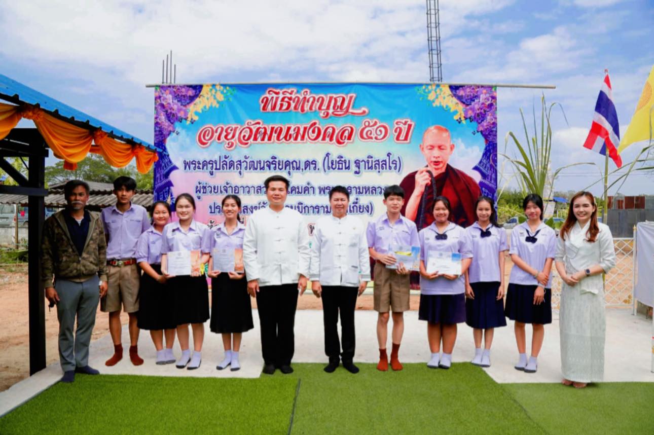 วันที่ 29 มกราคม 2569 นายบรรจง คิดดี ผู้อำนวยการโรงเรียนปงรัชดาภิเษก นายวิทยา จันทร์ทนะ รองผู้อำนวยการ และคณะ ร่วมพิธีทำบุญอายุวัฒนมงคล 51 ปี ท่านพระครูปลัดสุวัฒนจริยคุณ,ดร. (โยธิน ฐานิสฺสโร) ได้ร่วมจัดทำบุญโรงทาน และได้มอบหมายให้นางอภิณภรณ์ ปิงเมือง โปร่งสุยา ผู้ฝึกสอน นำนักเรียนที่ส่งผลงานเรียงความ หัวข้อ “บทบาทและคุณค่าของพระพุทธศาสนาที่มีต่อสังคมไทย ที่ส่งเรียงความเข้าเข้ารับรางวัลทุนการศึกษา ดังนี้
